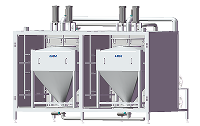 優(yōu)康恩自動化料系統(tǒng)用于對粉料和其它配料進行乳化和水化的混料系統(tǒng)設(shè)備。其中真空混料機可在密閉真空容器下進行高速剪切乳化混合綜合產(chǎn)品、各種粉末和液體等,每小時化粉量可達到3T-5T。優(yōu)康恩自動化料系統(tǒng)可利用真空作用將配料輸送到化料設(shè)備中,省去了操作工承擔(dān)這項繁重工作的需要。